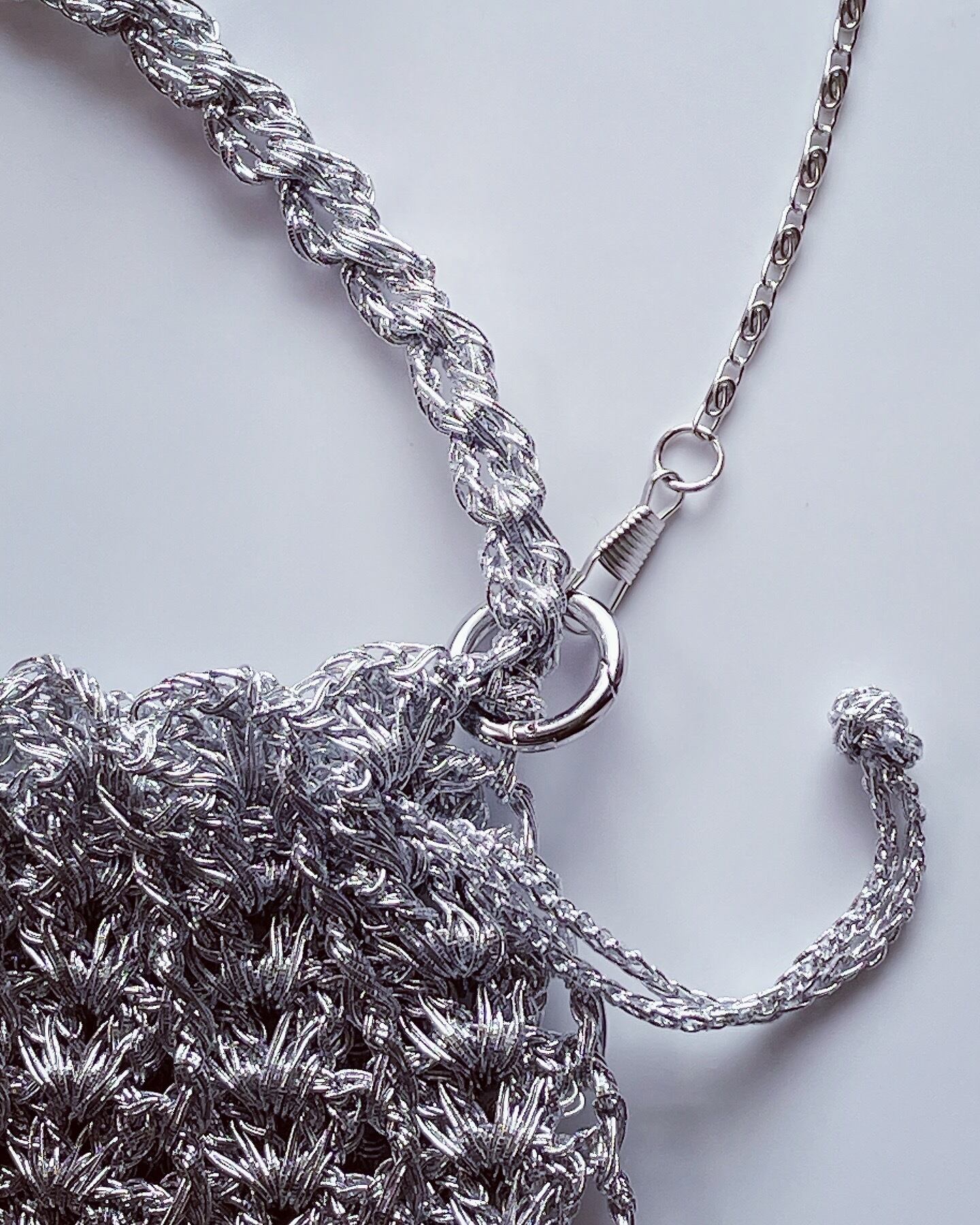 光沢のある糸で編んだ巾着バッグです